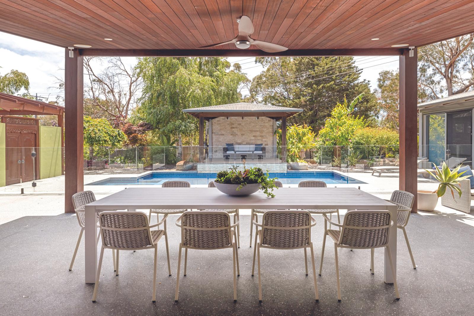 Soaring raked ceilings, polished concrete floors and walls of glass create a dramatic yet inviting interior, with the home oriented around its pool and alfresco pavilion to encourage seamless indoor-outdoor living. Concertina doors dissolve the boundaries between inside and out, revealing expansive paved entertaining zones, a resort-style pool, fire pit and beautifully curated gardens; all designed for year-round relaxation and unforgettable gatherings.