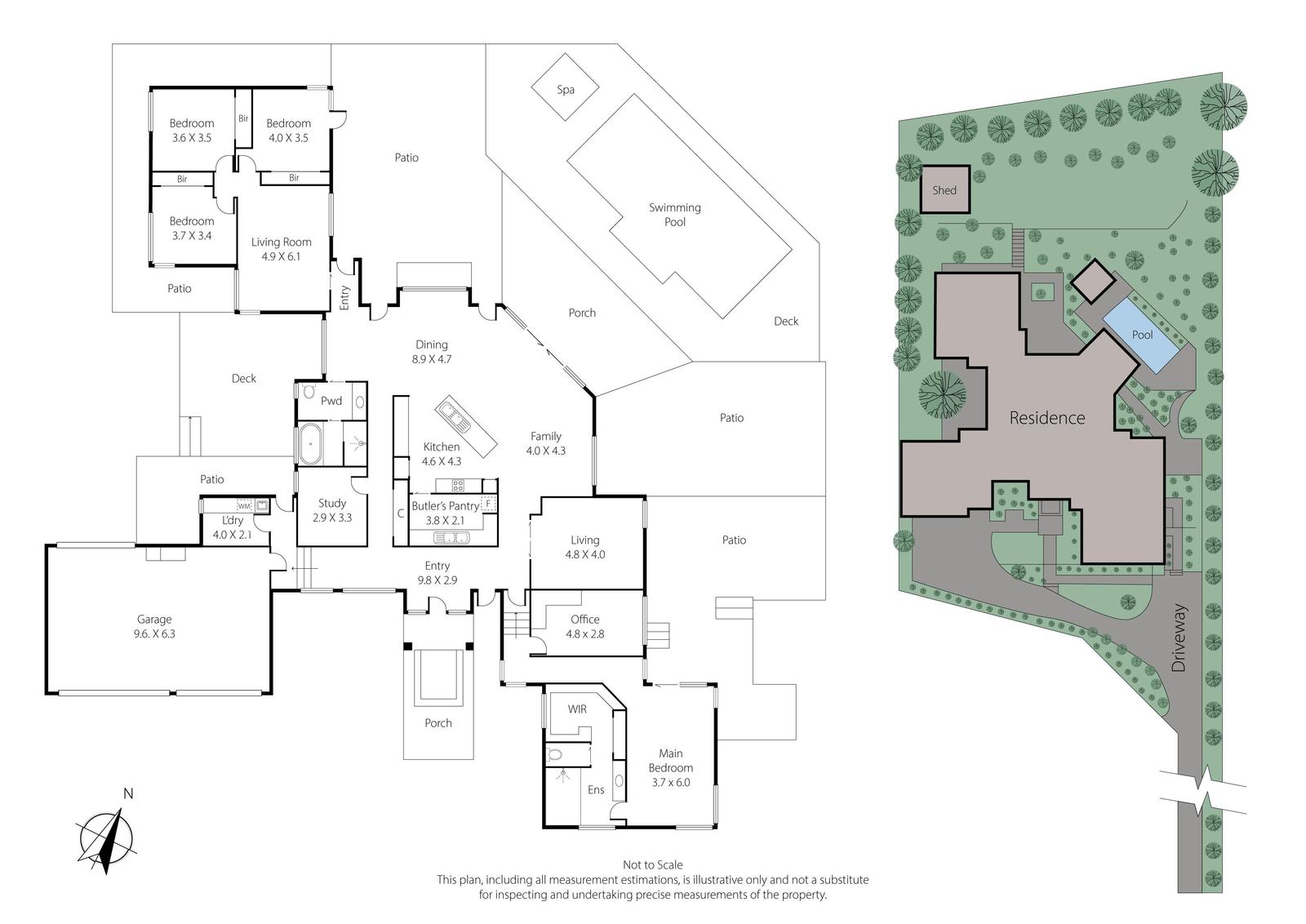 Rich timber floors and soaring ceiling heights enhance a seamless layout that connects two distinct accommodation wings with an expansive open-plan living area, taking the art of entertaining to exhilarating new heights. Designed to open out to a covered alfresco, solar-heated pool and above-ground spa, the statement kitchen with exaggerated light well, stone island bench, and breakfast bar, anchors dedicated living and dining space, complete with bespoke glass chandelier.