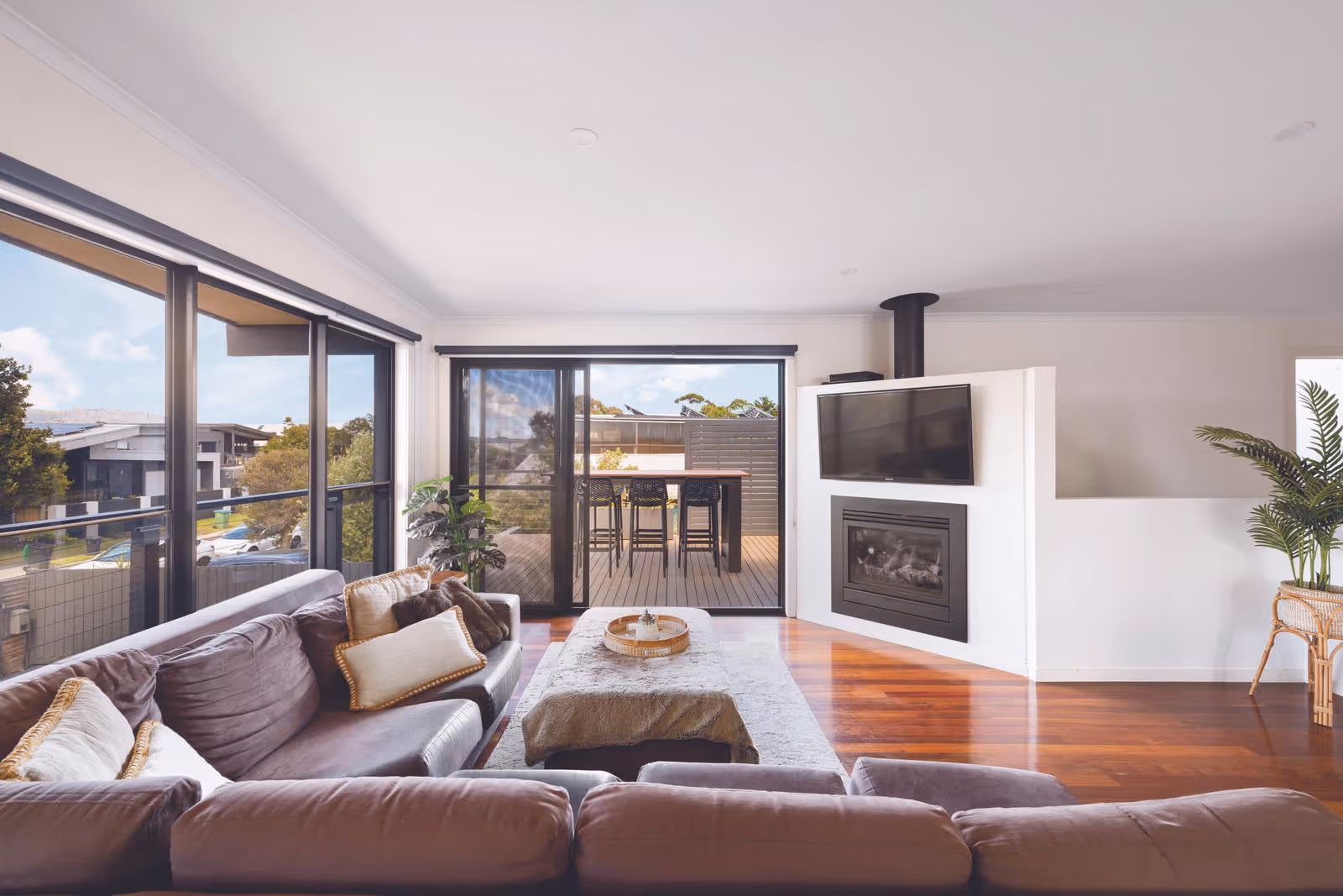 The front reveals breathtaking views of the iconic Arthurs Seat, while the rear features a sparkling swimming pool and spa with ground-floor alfresco entertaining, enriching the exceptional indoor-outdoor lifestyle. Between these spaces, dual entertaining zones, each with their own balcony, and a well-appointed kitchen outfitted with stone benchtops, high-end cooking appliances, and a Fisher & Paykel dishwasher.