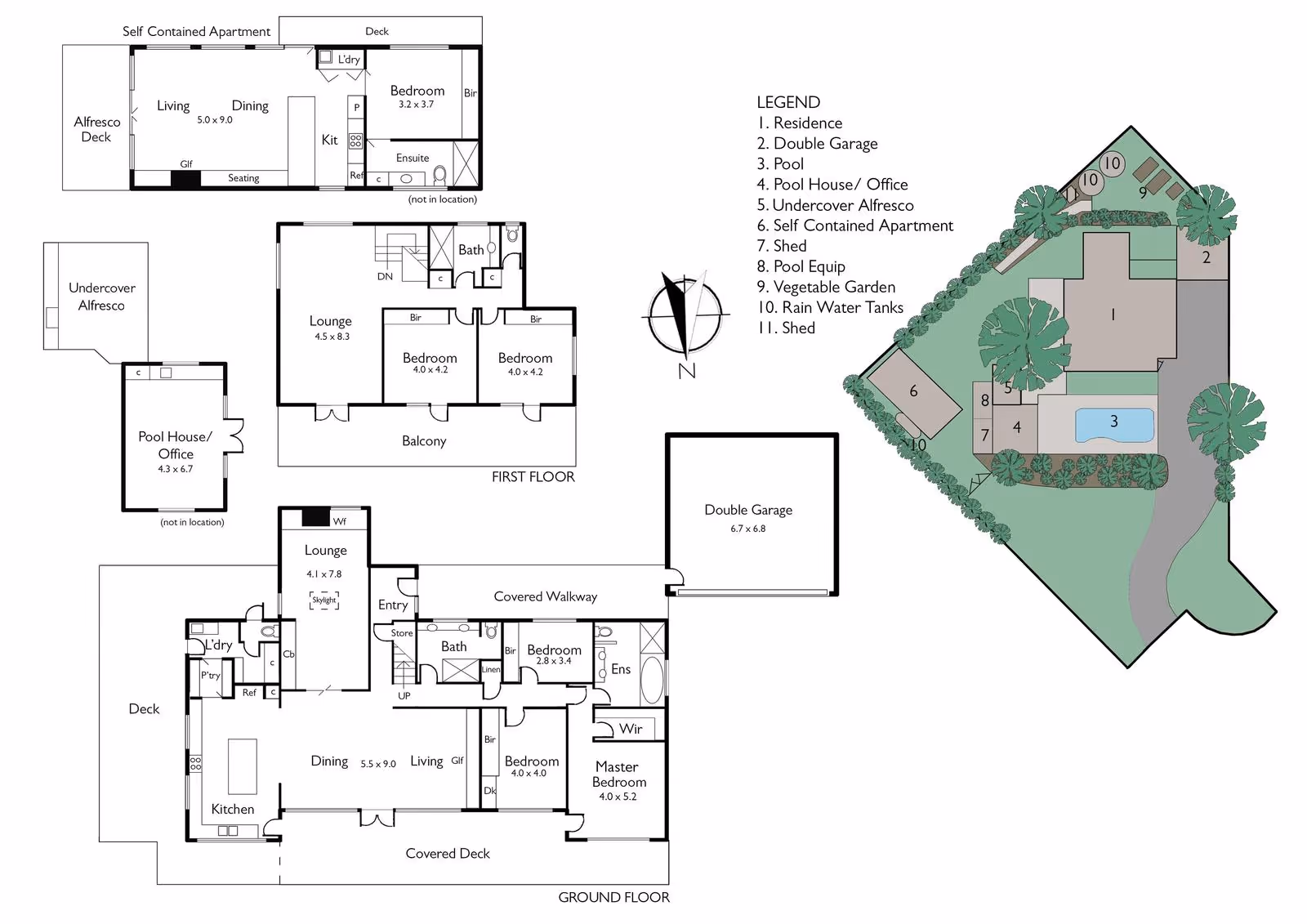 A stylish pool house and a architectural self-contained single-bedroom apartment provide versatile living options, ideal for extended family or guests, while the home’s multiple living zones, bespoke kitchen with butler’s pantry, and designer features create warmth and sophistication throughout.