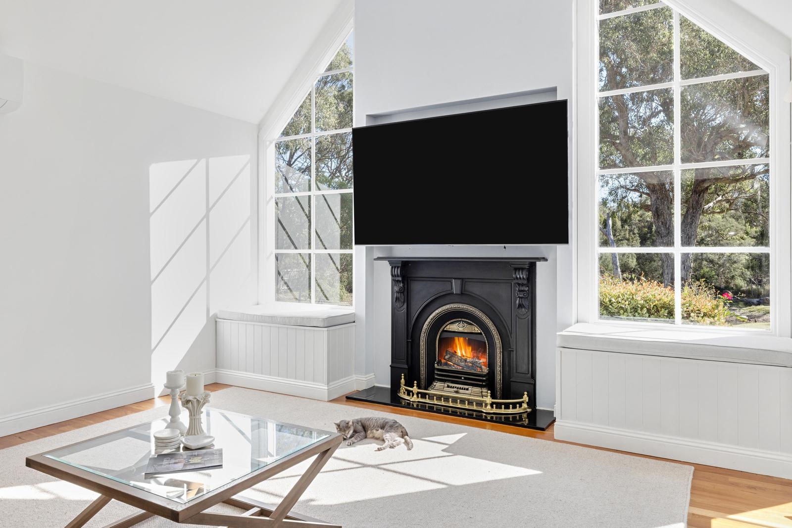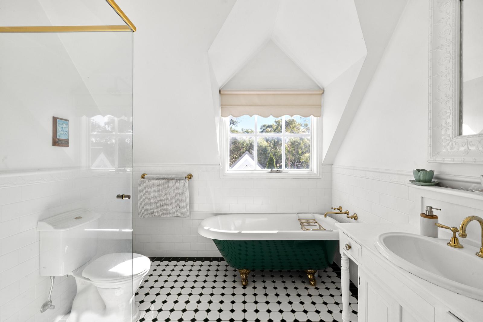 The home makes an elegant yet modern statement with its soaring pitched roofline and dormer windows while recent renovations amplify the graceful charm of solid timber elements and multi-grid glazing. A social heart grounds the lower level, extending to both a covered alfresco with built-in BBQ, and well-equipped kitchen featuring a refurbished Falcon dual-fuel cooker and walk-in pantry. Well-zoned for families, a dedicated children’s floor features a secondary lounge, main bathroom with claw foot tub, and two light-filled bedrooms each with built-in robes. The main wing offers a serene retreat with ‘his and her’ walk-in robes, deck access, and indulgent ensuite. For added flexibility, a guest bedroom featuring an ensuite serves as excellent accommodation for visitors. Lifestyle comforts extend throughout with split-system heating and cooling throughout, an ambient gas fireplace, solid timber floors, laundry, and ample off-street parking.