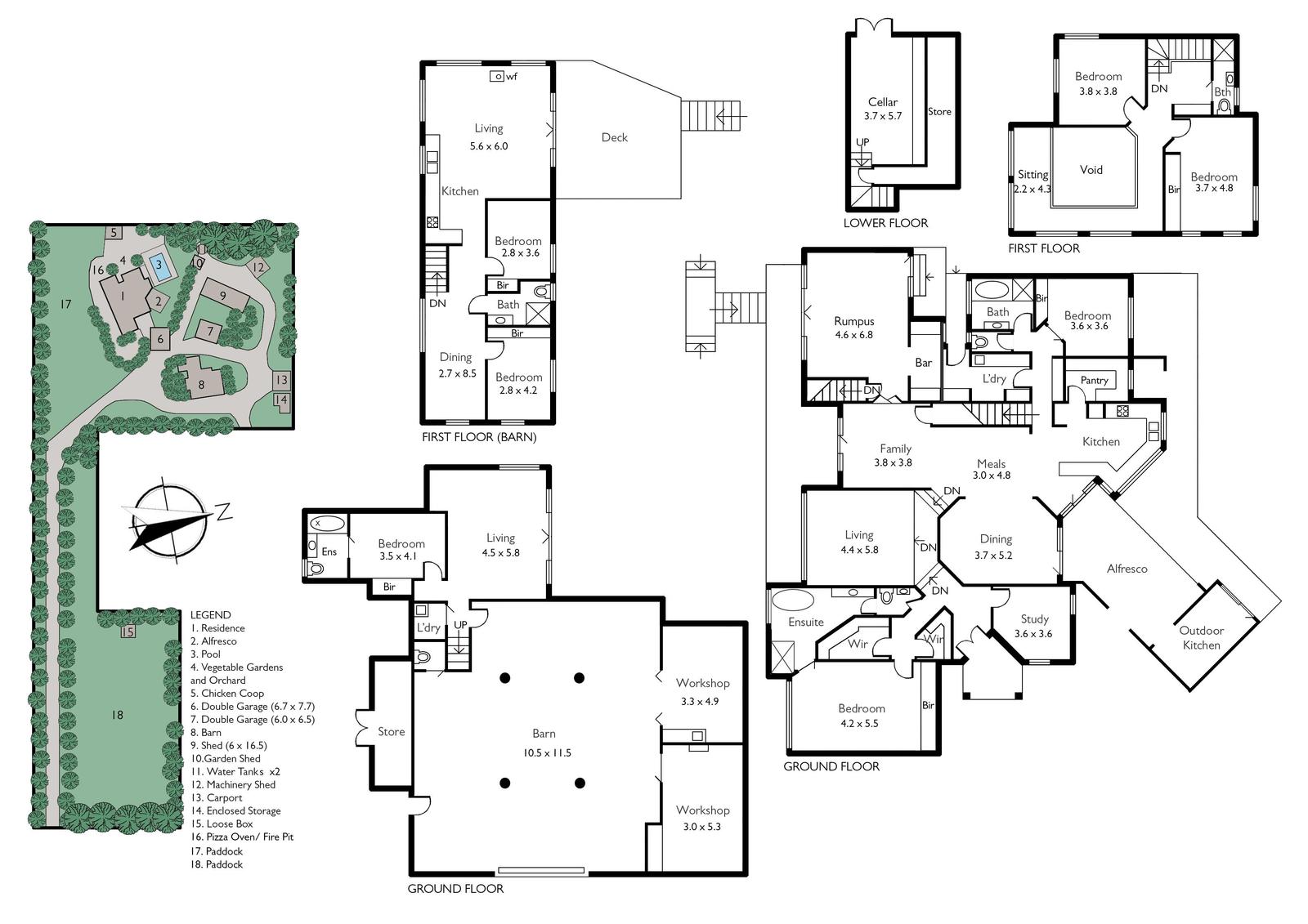 A comprehensive outdoor kitchen supports alfresco hosting alongside the solar-heated pool, while an awe-inspiring kitchen garden and chicken coop, extends beyond leading to an outdoor pizza alfresco area. The separate three-bedroom barn provides effortless self-contained living for guests or family members, with its own kitchen and open-plan living and dining, ground-floor rumpus, and sun-kissed deck.