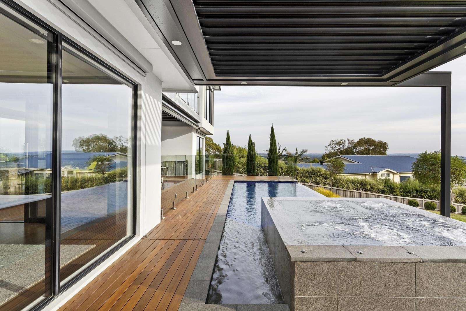 - Full automation heated Infinity edge 7m x 3m concrete tiled pool plus 2m x 2m spa